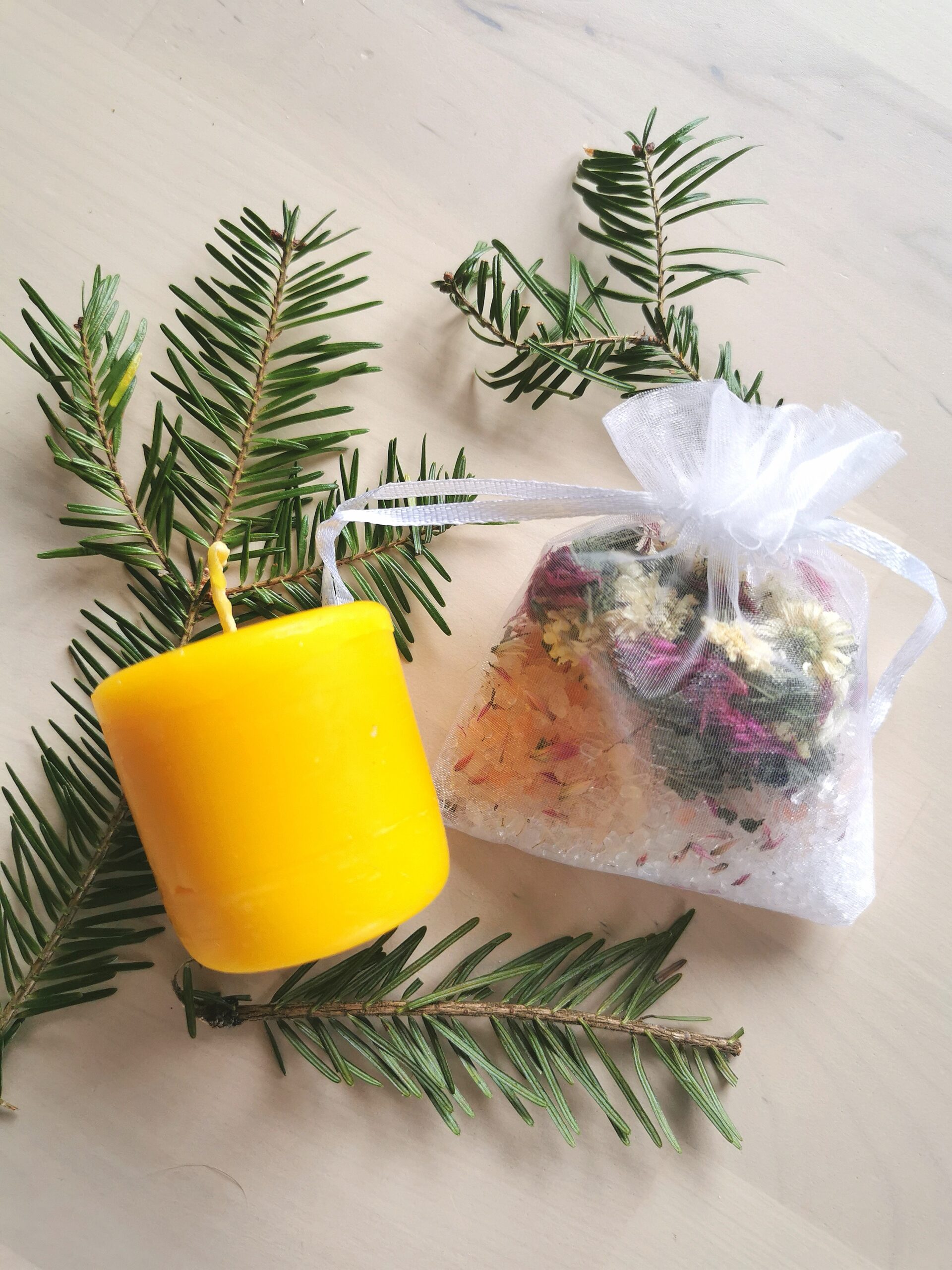 🕯️ Chandelle artisanale en cire d’abeille pure, faite à la main par notre partenaire Abeilles de la Colline, pour purifier et adoucir l’air ambiant.